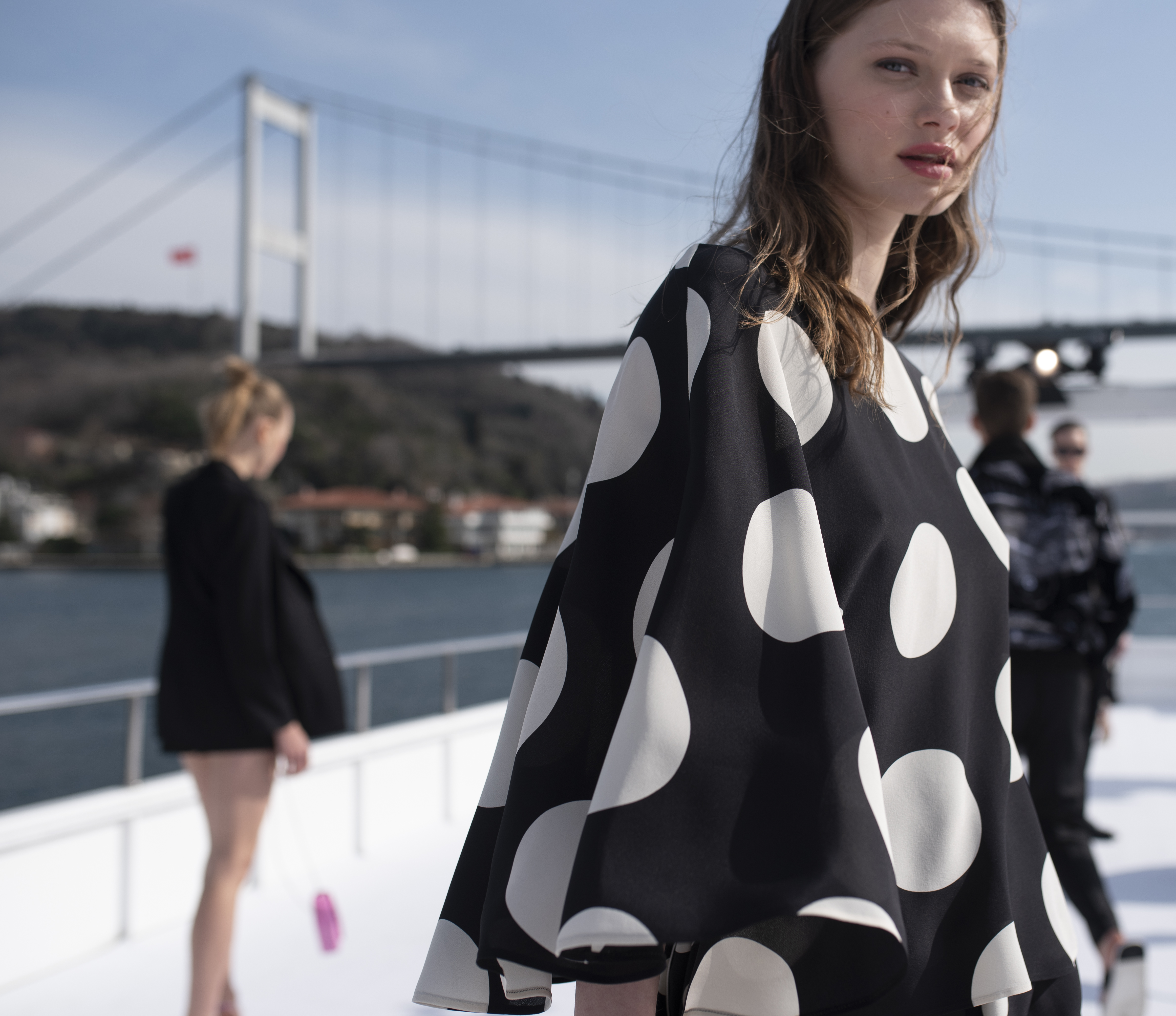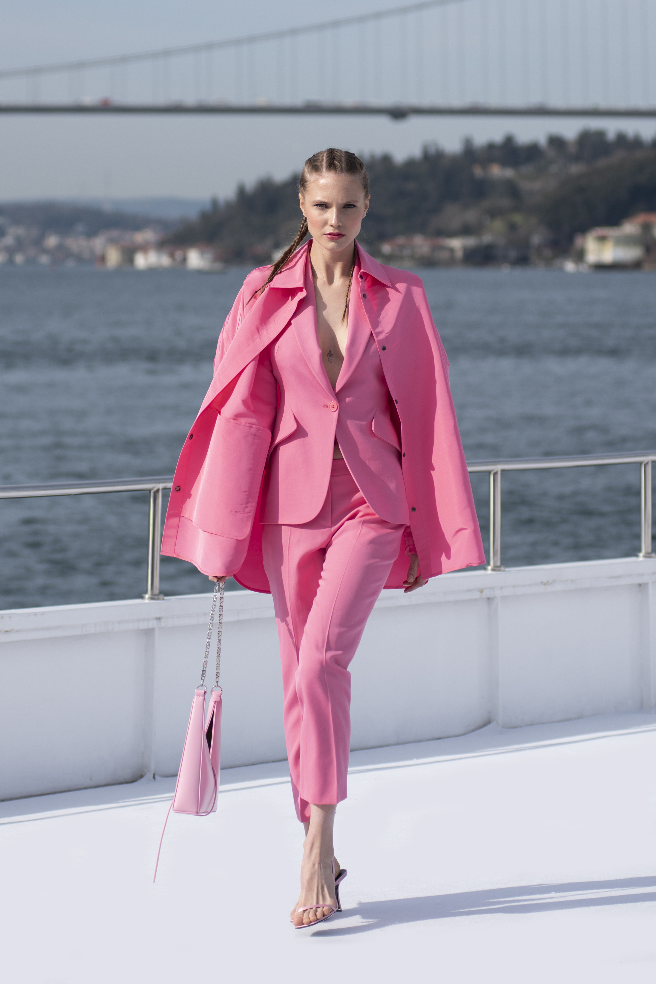 Neon tonlar, puantiyeler, kırmızı & pembe birlikteliği ve denim gibi sezon trendlerinin öne çıktığı öne çıktığı dijital sunumda yeni nesil şort ceket takımlar, baharın habercisi koton ve keten tasarımlar dinamik siluetleriyle izleyicilerle buluşurken, yaklaşan yazı müjdeleyen ipek ve şifon feminen elbiseler İstanbul Boğazı’nda romantizm rüzgarları estirdi.